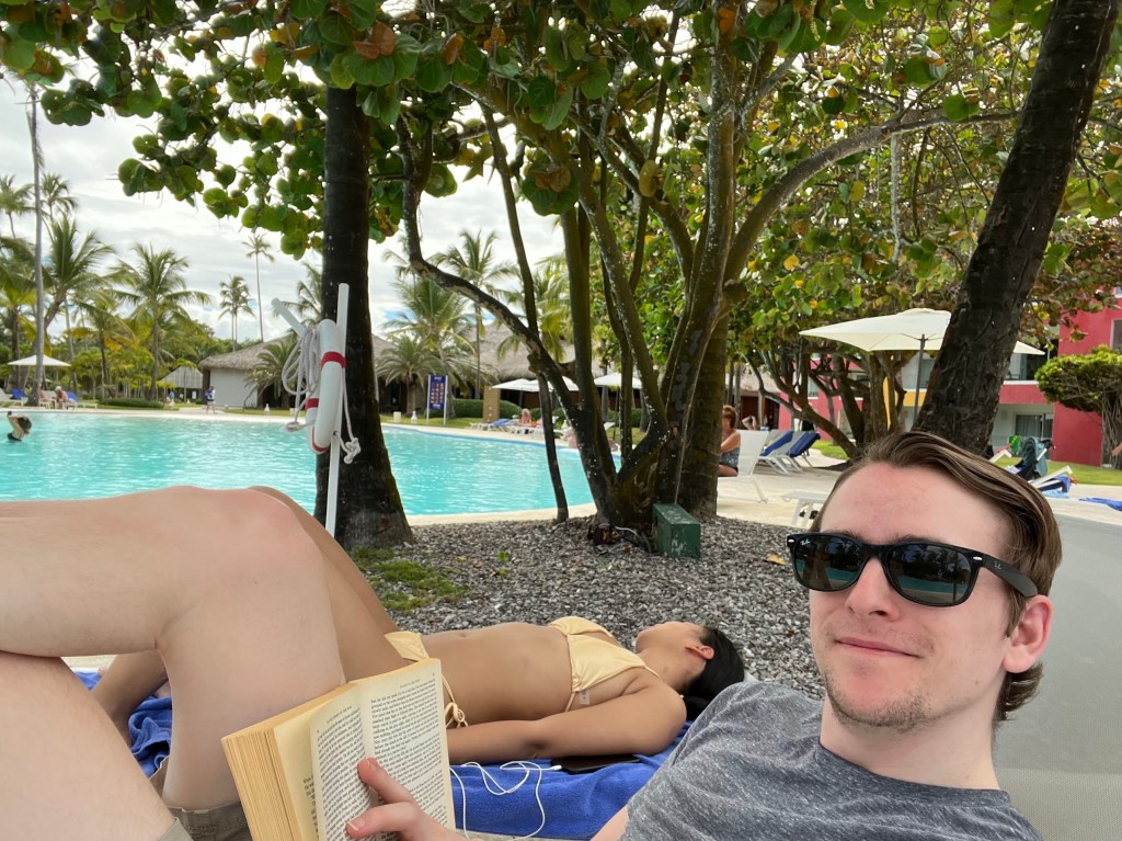 The pool is busy, resort goers flit about the bar like flies hoping to snatch a taste of paradise. It’s been a calm week so far, and the weather promises to continue bright and sunny until we depart on Saturday. I consider returning to my book, The Fellowship of the Ring, which I have devoured over the past few days. With luck I will finish it by the time we land in Boston.